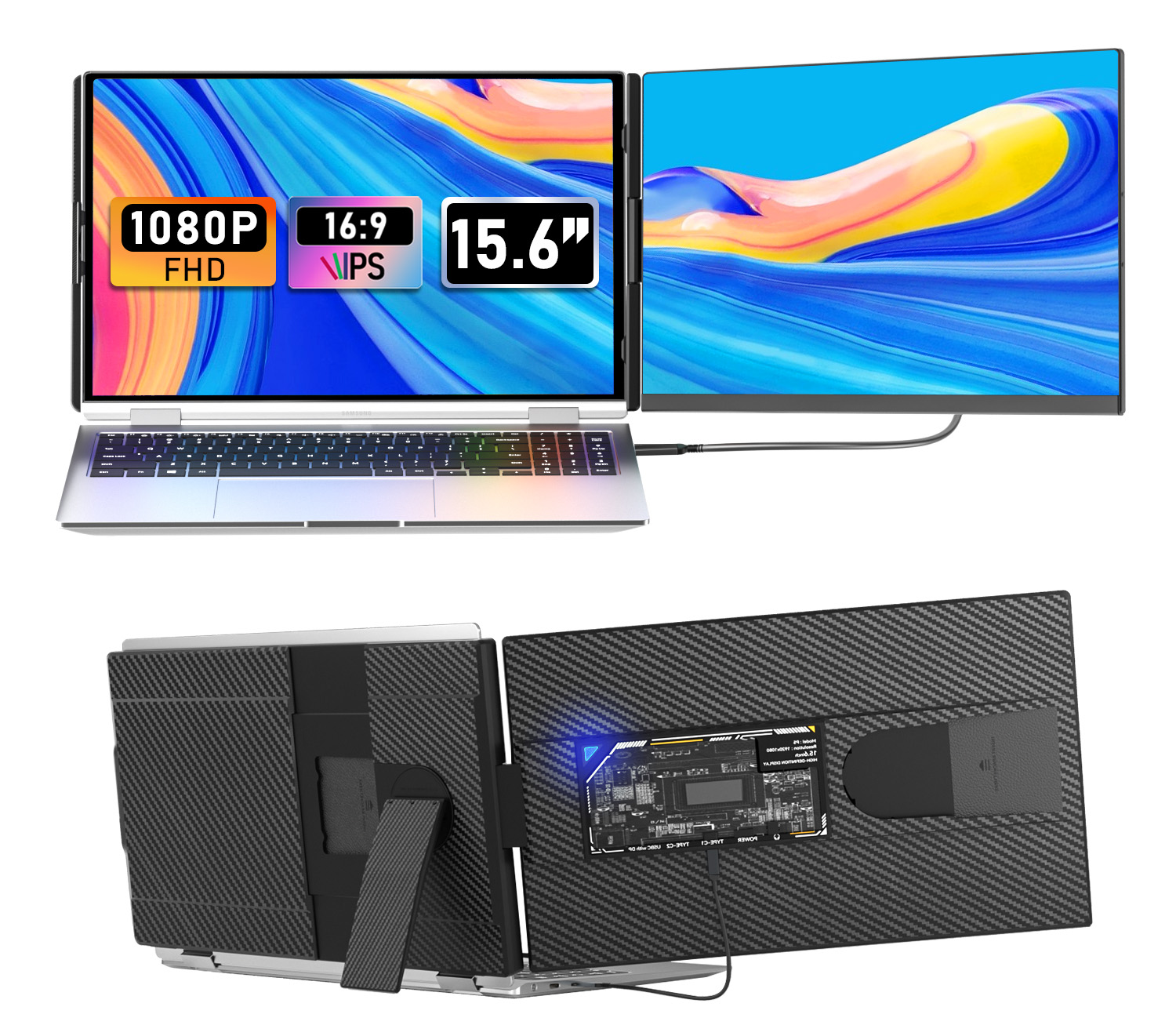 ตัวขยายหน้าจอแล็ปท็อป OEM ตัวขยายหน้าจอแบบพกพาหน้าจอ IPS FHD 1080P Win Mac แล็ปท็อปแบบพกพาจอคู่สำหรับแล็ปท็อป